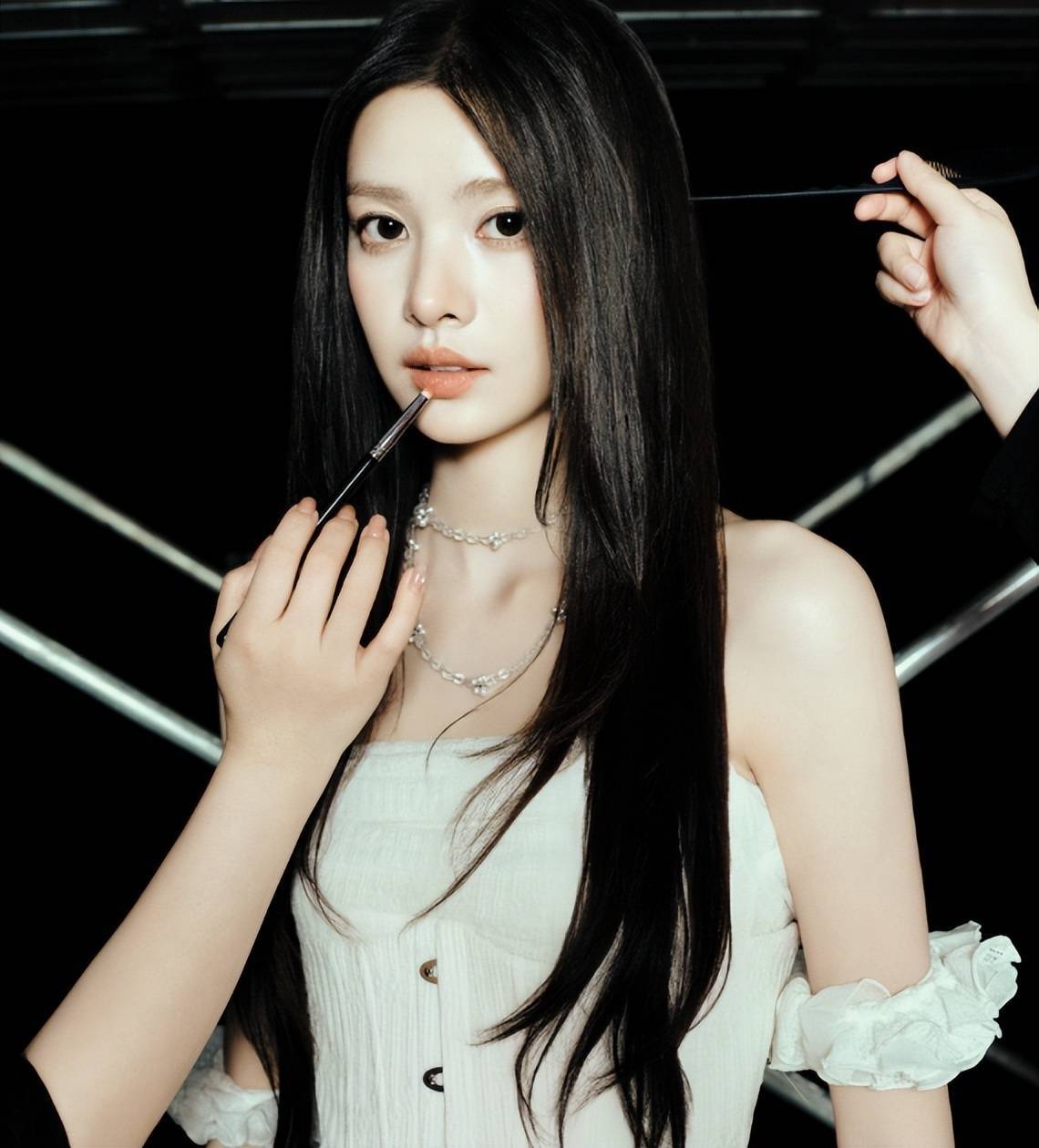 张艺上美得极为高级。一张骨相优越的脸,能扛住任何角度的镜头,脸部线条略显柔和,鼻尖微翘,不笑时带着一种“无辜感”,黑长直搭配白色连衣裙,将“白月光”三个字完美具象化。